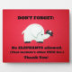 Elephant with ribbon tied around it's trunk, and humourous way to get your message across: "Don't Forget: No ELEPHANTS allowed. (That includes other pets too!.) THANK YOU!" Great for any doctor's office or place of business that doesn't allow pets!