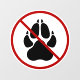 Let people know that pets or dogs are not allowed to a certain establishment or area. The design features a black dog paw silhouette that has a red no symbol is placed over it.
