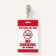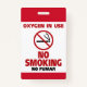 A caution tag for a patient using an oxygen tank or other combustible device.