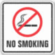 A no smoking sticker featuring a black cigarette under a red, crossed over circle and the text "No smoking" surrounded by a black border. Square sticker with rounded corners.