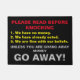 A black background with the following text: Please read before knocking, 1. We have no money 2. We have already voted. 3. We are fine with our beliefs. Unless you are giving away money GO AWAY!"
