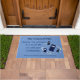 The opportunity for a science fiction fan to have a little fun with solicitors. Blue police boxes and a no soliciting message on a blue background. Original design by Night Owl's Menagerie 2019.