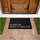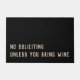 Doormat featuring the text "no soliciting unless you bring wine" in a neutral, light brown font on a black background. Text can be changed. All colours are customizable in the design tool.