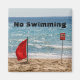 "No Swimming" sign and Red flag on the beach of Palma de Mallorca - Balearic Islands, Spain.
