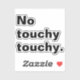 Grab this "No touchy touchy" funny saying introverted tee shirt to show your sense of humour by wearing this basic cool text style. for Black and White Contemporary Art Lovers. I'm sure that it can spark many conversations and will help with breaking the ice. This funny awkward design is a great gift idea for introverted employees, colleagues, coworkers, managers, supervisors, friends, or family, and also makes a great birthday, holiday gift, or Christmas present. (YOU CAN CHANGE AND CUSTOMIZE THIS TEXT DESIGN OR ANY TEXT YOU WANT IN MY STORE!).