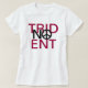 A tshirt for everyone who is against the Trident nuclear weapons system based in Scotland. The slogan reads No Trident. The letter 'o' of the word No is a graphic of the famous CND anti-nuclear ban the bomb peace symbol. Above and below are giant red letters spelling out the word Trident. If Scotland votes Yes in the Scottish independence referendum on 18th September, then we can get rid of these weapons of mass destruction from our shores, and save billions of pounds in the process.