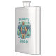 The product is a good size and came exactly as it was pictured. The lid is not attached to the flask, which could be dangerous on drunken nights... The print came out surprisingly well and looks very sharp. Would definitely recommend.