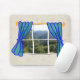 If you don't have a window in your office or cubicle, try putting up a picture of a window. It's almost like the real thing! Try this cartoon, hand-drawn window, complete with curtains and faded wallpaper, looking out onto a peaceful nature scene. Or try it on a mousepad!