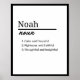 Printed on high-quality paper, this poster ensures vibrant colours and sharp details that will stand the test of time. The name "Noah" is prominently displayed, followed by a detailed definition that adds a touch of personality and charm. This personalized poster makes for an excellent gift, ideal for birthdays, special occasions, or as a thoughtful keepsake.