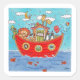 This beautiful print of a pen and watercolour illustration by Helen McCartney Designs features a group of sweet animals huddled together aboard Noah's Ark.