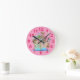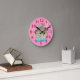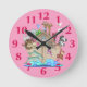Noah's Ark Wall Clock with a pink background. Great baby shower gift for the mom of a newborn girl. delightfuldoodles.