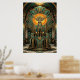 A majestic stag with large antlers framed by sun rays and geometric architecture. Perfect for a masculine or classic vintage interior.