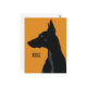 A minimalist postcard design for dog owners or lovers which has been put on yellow background. The design introduces a silhouette of a black Doberman accompanied with the default customizable thanks.