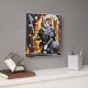 Noble Cat in Armour Holding Sword and Shield Square Wall Clock
