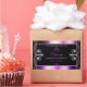 Matching a shimmery purple frame and cute hearts graphic on a black background.