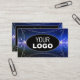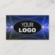 Nobly Black Blue Ornate Sparkle Diamonds with Logo Business Card