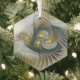 Nobly Golden Teal Abstract Fantasy Fractal Art Glass Ornament