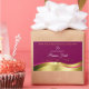 The design features a noble shimmery wavy gold decoration with soft glitter stars and a wine red background.