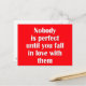 Love is blind—at least it is blind to people's faults! If you're tired of hearing someone rail about how perfect their boyfriend or girlfriend is, then you'll love this saying: "Nobody is perfect until you fall in love with them."