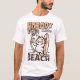 This fun and playful design features a happy, sun-loving cat enjoying a drink under a palm tree with a surfboard in the background. The bold text "Nobody Likes a Shady Beach" humorously highlights the beach vibe while delivering a subtle, cheeky message. With warm tones and a relaxing atmosphere, this image combines humour and the perfect tropical getaway.