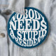 "NOBODY NEEDS A STUPID PRESIDENT"