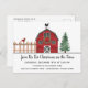 Carte postale d'invitation de fête de vacances rustique Noël à la ferme - avec une adorable grange rouge rustique toute décorée pour les fêtes. La carte postale fait partie d'une collection.
