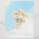 Joli ange de Noël bouclé portant une plaque de gâteau à la décoration sainte sur un arrière - plan du ciel nuageux sur cette en-tête de recette de vacances ou de papeterie pour garder et partager votre collection de recettes.