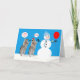 Souhaitez à tous un joyeux Noël de l'anniversaire avec deux adorables ratons laveurs avec un bonhomme de neige avec un oiseau perché sur son bras tout en tenant un ballon rouge.
