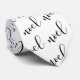 This stylish holiday tie features the word "noel" repeated in modern black calligraphy on a white background.