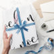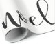 This stylish holiday wrapping paper features the word "noel" repeated in modern black calligraphy.