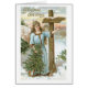 Carte Vintage de Noël illustration d'un ange montrant la direction tout en tenant un petit arbre de Noël !