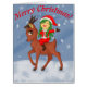 Cette petite fille et son renne sont tellement excités pour Noël ! Elle est assise sur son cerf et fait des vagues à tous ceux qu'elle voit. Elle est dessinée dans le style d'art Chibi (super déformé), inspiré des mangas japonais.
