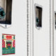 Image printed on magnet is from a photo of an original tapestry crochet creation designed handmade and Copyright © by published designer Delores Chamblin. The picture of the unique handcrafted brick fireplace red gold green and white Christmas wall hanging with yarn fringes is reproduced on the magnet.