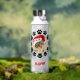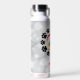 Chat mignon comme Père Noël dans un cadre avec des empreintes de pattes sur un arrière - plan gris clair avec des flocons de neige. Photo personnalisée