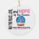 Mai la paix, l'amour, et l'espoir de la saison demeurent avec nous tout au long de l'année. Fournissez ce sentiment de inspiration tout en partageant un message important de conscience pour la cause chère à votre coeur avec notre collection exclusive de souvenir de globe de neige de Noël ornemente comporter un globe hypnotisant de neige rempli de neige, d'arbre de Chrismas de ruban, et de ruban de conscience. Idéal pour stocker des stuffers, des cadeaux secrets de Père Noël, ou juste "quelque chose" inclure avec une carte de voeux. NOTE : Les cartes de voeux, les timbres-poste, les T-shirts, les tasses, et plus assortis sont disponibles dans notre magasin de Zazzle sous chaque cause,