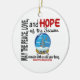 Mai la paix, l'amour, et l'espoir de la saison demeurent avec nous tout au long de l'année. Fournissez ce sentiment de inspiration tout en partageant un message important de conscience pour la cause chère à votre coeur avec notre collection exclusive de souvenir de globe de neige de Noël ornemente comporter un globe hypnotisant de neige rempli de neige, d'arbre de Chrismas de ruban, et de ruban de conscience. Idéal pour stocker des stuffers, des cadeaux secrets de Père Noël, ou juste "quelque chose" inclure avec une carte de voeux. NOTE : Les cartes de voeux, les timbres-poste, les T-shirts, les tasses, et plus assortis sont disponibles dans notre magasin de Zazzle sous chaque cause,