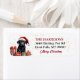 Le côté gauche de ces étiquettes d'adresse de retour de vacances amusantes est représenté par l'image d'un adorable Labrador Retriever noir portant un casquette de père Noël rouge et blanc. Il est assis à côté de paquets cadeaux emballés de couleurs vives. Votre texte personnalisé est en rouge et noir à droite. Un subtil arrière - plan de confettis d'or donne un peu d'éclat de Noël. Assurez-vous de voir l'assortiment de cadeaux à thème pour chien et les nécessités de vacances dans notre magasin.