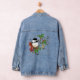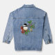 Chickadee mignon assis sur une branche d'arbre en hiver avec des flocons de neige tombant tout autour. Les ornements de Noël pendent de la branche d'arbre sur laquelle le poulet est assis.