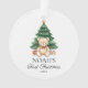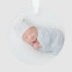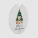 Créez votre propre ornement de Noël de bébé avec un nom personnalisé et une aquarelle moderne illustrant l'ours en peluche et le sapin de Noël. Ajoutez votre propre photo à l'envers de l'ornement.