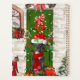 Great Dane Dog Noël assis à l'extérieur de la maison décorée avec la couronne de Noël, le sapin de Noël est une idée cadeau de Noël parfait pour les amoureux de les chiens.