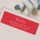 Un élégant label moderne d'adresse de retour de vacances avec une police manuscrite pour votre nom de famille en blanc avec une couleur de trait rouge vif dans un style scandinave "scandi". Le nom et l'adresse peuvent être facilement customisés pour une touche personnelle. Un design classique et minimaliste pour se démarquer de cette période de vacances !