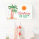 Fêtons Noël en juillet avec un barbecue ou une fête ! Famille Invitation et amis à votre fête de Noël et décorez-la avec cette bannière de style île avec des palmiers dessinés à la main et décorés de lumières. Dessin original © Michele Davies.