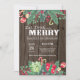 Invitation Noël Fête de Fêtes. Mangez, buvez et soyez Joyeux. Arrière - plan rustique de la campagne de bois. Décorations de Noël. Pour plus de personnalisation, cliquez sur le bouton "Customiser" et utilisez notre outil de conception pour modifier ce modèle.