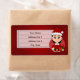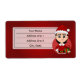 Conception avec l'illustration d'une jolie fille souriante avec de courts cheveux noirs, elle porte un costume de Père Noël rouge et blanc et tient un cadeau; avec texte modifiable modèle pour votre nom ou message, Noël design avec un arrière - plan rouge