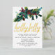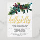 Le spermophile festif et le pin aux baies rouges viennent compléter cette invitation de Noël. La fête de Noël de Holly Jolly est écrite ci-dessous en feuille d'or pressée.