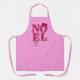 Apron in the greeting "Noel" patterned with retro modern Christmas trees in shades of burgundy and pink, embellished with a ribbon bow and a Christmas ornament