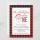 Oh quel plaisir, c'est d'être un ! Noël Père Noël première invitation de fête d'anniversaire avec aquarelle père Noël, noël et buffle plaid retour.