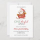 C'est le plus ONEderful moment de l'année ! Père Noël Sleigh première invitation de fête d'anniversaire avec en-tête père Noël aquarelle, couronne de noël et pois rouge en arrière.