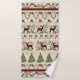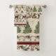 "Lodge Christmas Tree Joyeux Ensemble de serviettes de bain de cerfs brillants Antlers." L'art des mots inspirant et émotionnel remplit les arbres de Noël de la forêt. Blonde arrière - plan de bois rustique avec des couches rayées d'éléments thématiques de Noël et d'hiver : Bois de cerfs avec ornements et étoiles à main, arcs avec cônes de pin et feuillage de fougères, silhouettes de cerfs avec coquille de buffle rouge et noir, ornements et texte de typographie, "Joyeux et brillants." Tout l'art a été créé par Audrey Jeanne Roberts, artiste et designer de renommée internationale, copyright.
