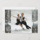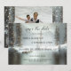 Un hiver Save the Date carte avec un paysage de montagne couvert de neige avec des lumières scintillantes dans les arbres et votre propre photo sur le dos. Le code QR permet à vos invités de trouver facilement votre site mariage.